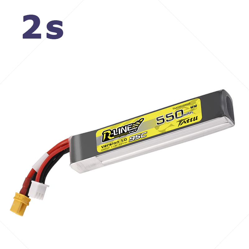 TATTU R-Line 550mAh 7.4V 2S1P 95C Lipo Battery Long Pack (XT30 connector)