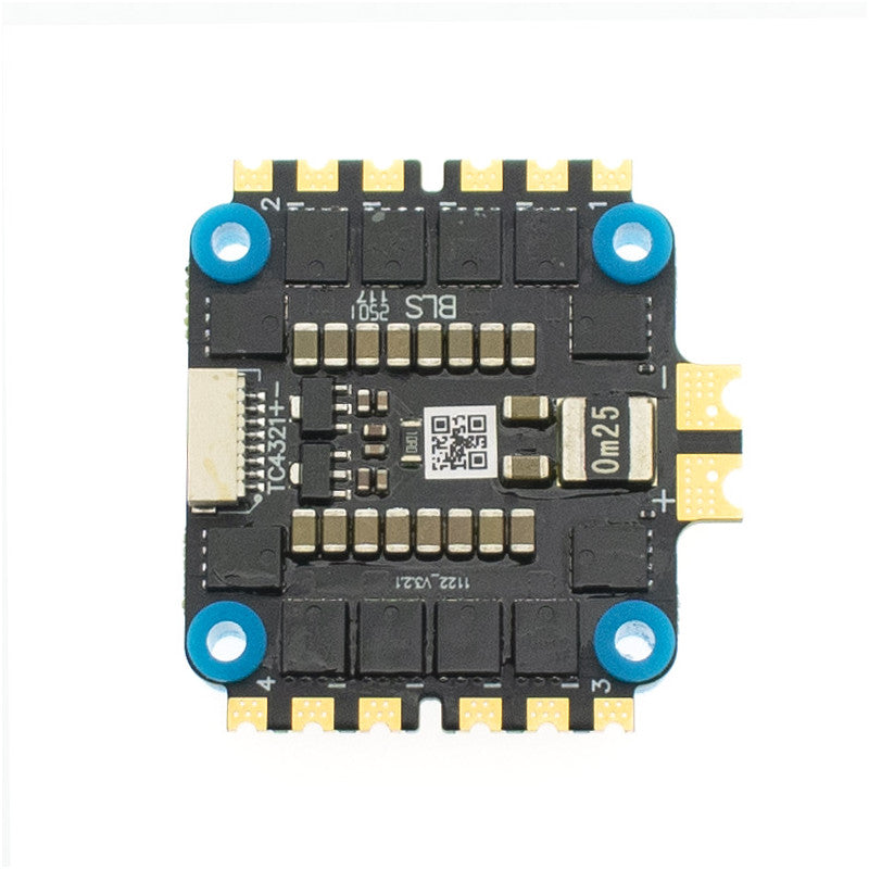 The 4-in-1 ESC runs on BLHeli_S firmware and supports a continuous current of 65A.